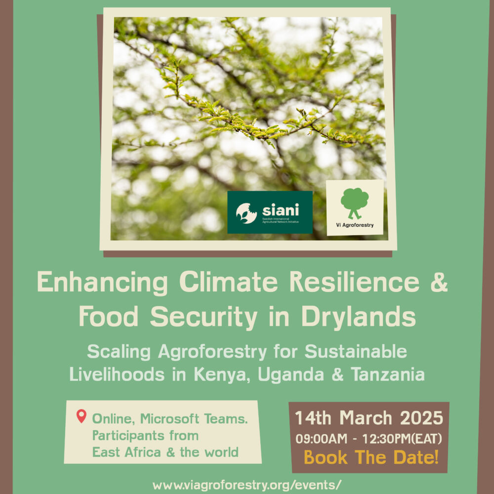 The event is organized by the East African Dryland Agroforestry Expert Group. Learn more about them from Vi Agroforestry (the group coordinator) and SIANI (the donor).